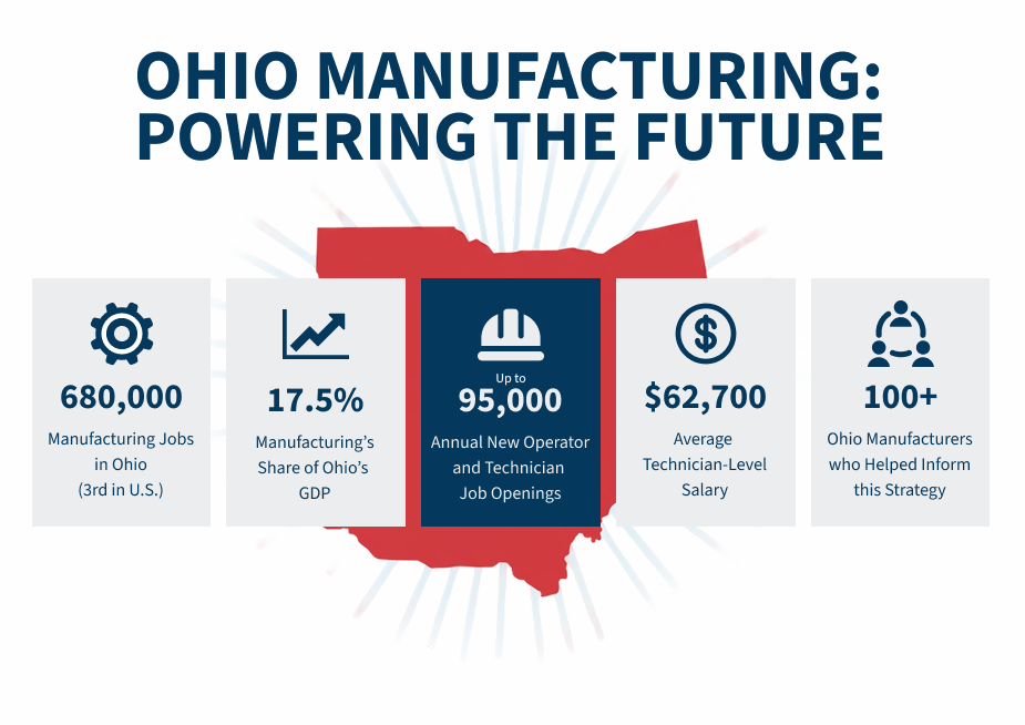 Ohio is making headlines for the right reasons – record investment, national recognition and a surge in manufacturing job creation. Ohio has a chance to prepare more than 35,000 new operators and technicians each year to meet growing demand and fuel the future of manufacturing.